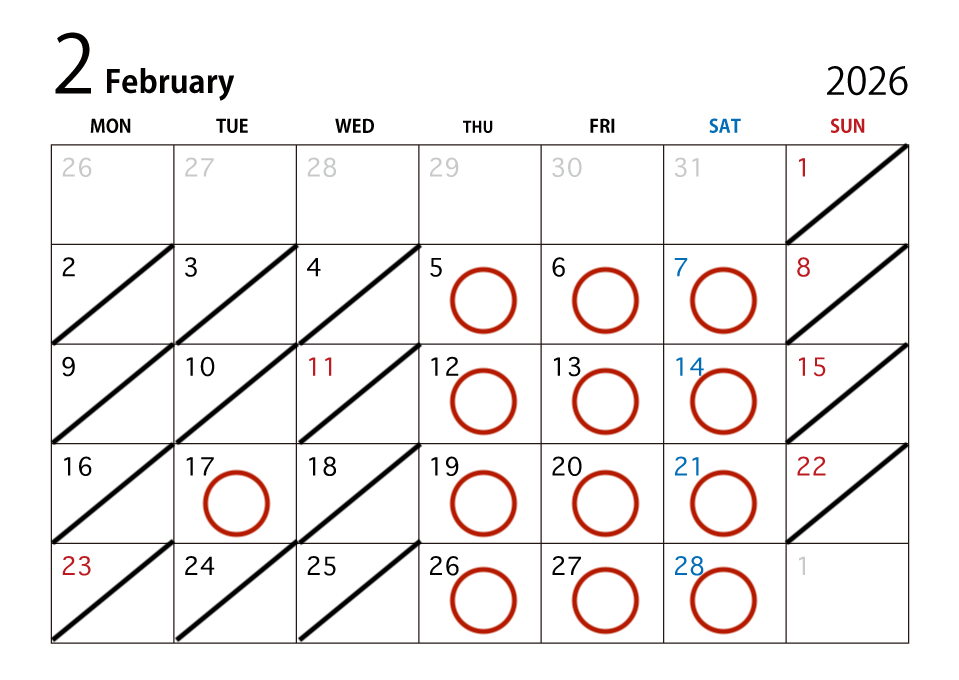 2月休業日のおしらせ